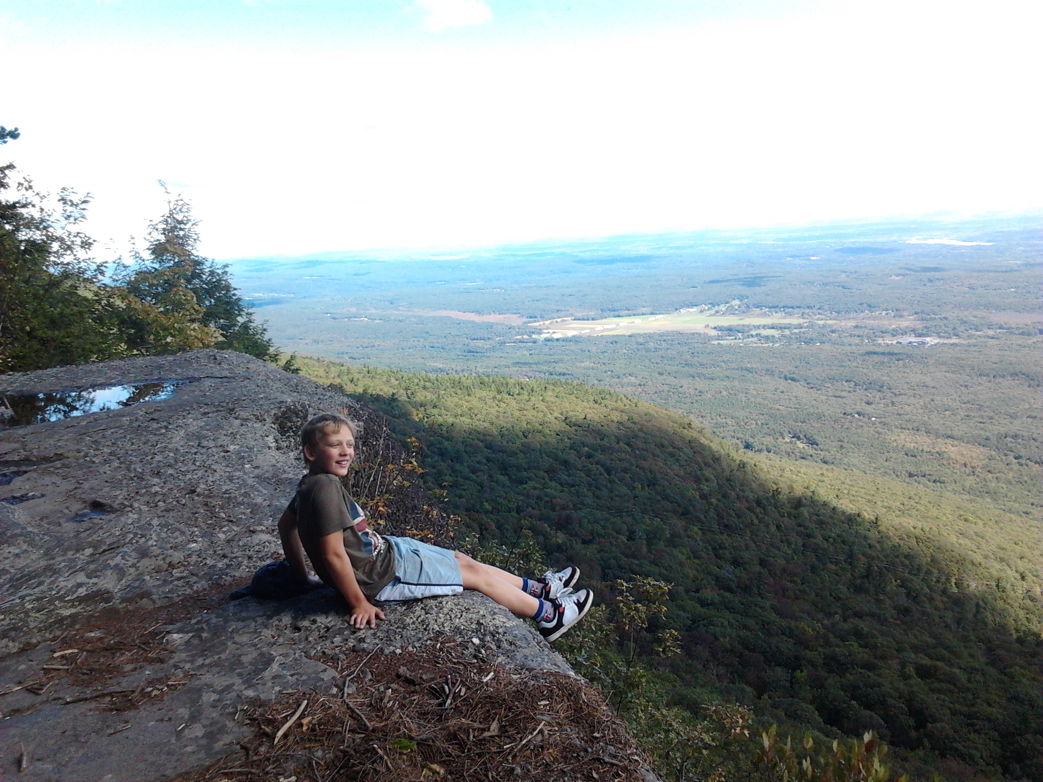 To traucē tikai mūsu bērnu čala, kam nevajag nekādus obligātos skatu punktus un izcilos tūrisma objektus. Pie brokastu galda ar apspriežoties ar Janīnu tomēr top skaidrs – tos vajadzēs. Jo pierādās Apalaču spožums un posts, tie ir tik ļoti mežiem apauguši, ka tālus skatus no tiem ieraudzīt grūti. Tuvākais kalns no atpūtas nama ir tepat, stundas kāpiena attālumā, bet, ak vai, aiz vāciešu privātīpašuma, kam netīk, ka caur viņu mežu kāds staigā. Citas takas, kas kartē redzamas, esot stāvas un mums ar maziem bērniem pavisam nepieejamas. Nu ko, braucam uz kārtējo dabas parku (iebraukšana $8), un ejam aplūkot slavenu skatu – izbijušu viesnīcas vietu, kur no augšas paveras skats kādu 30 km garumā uz 5 – 8 km tālu esošo Hudzona upi un tās ieleju. Nu ko lai saka – skaisti!