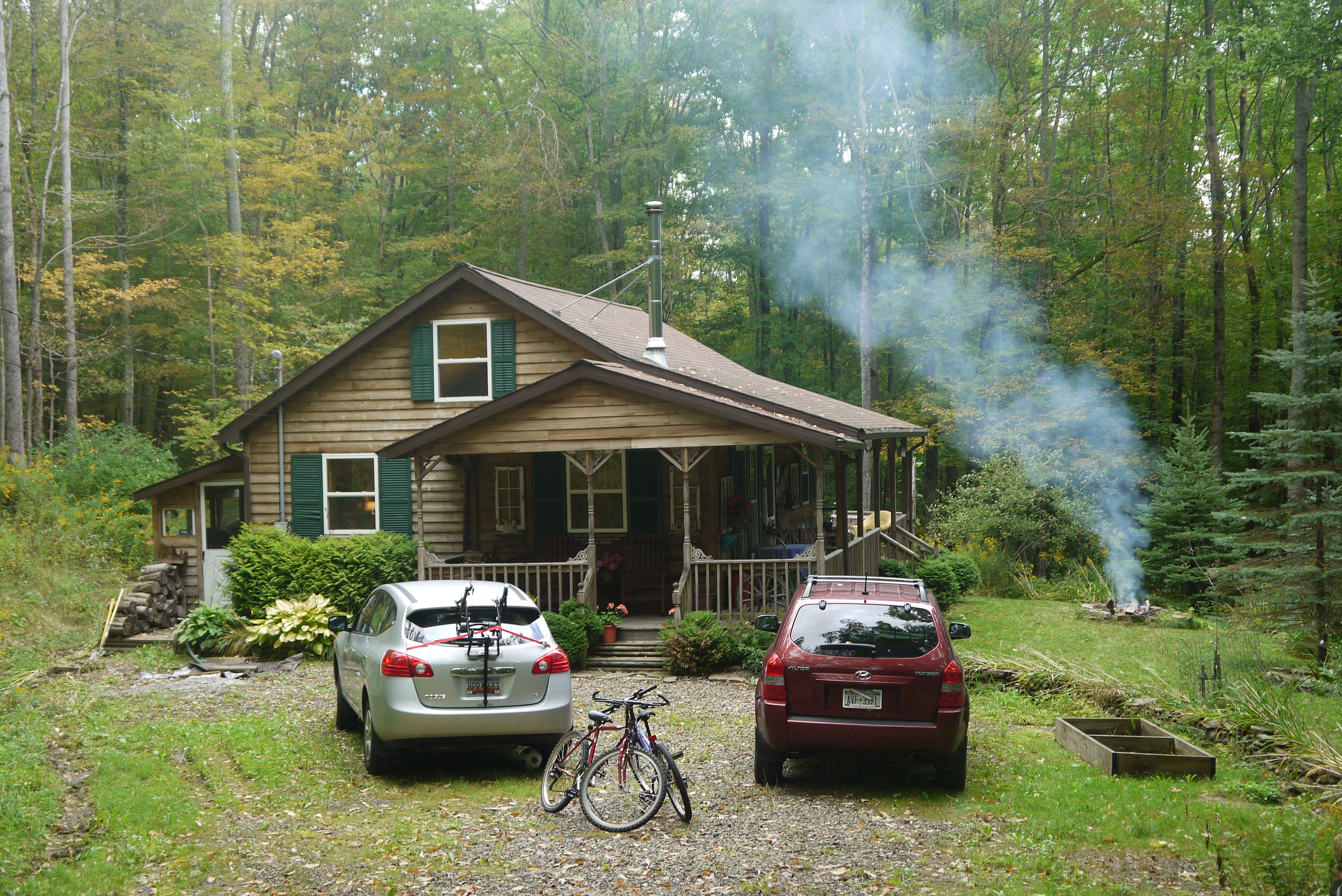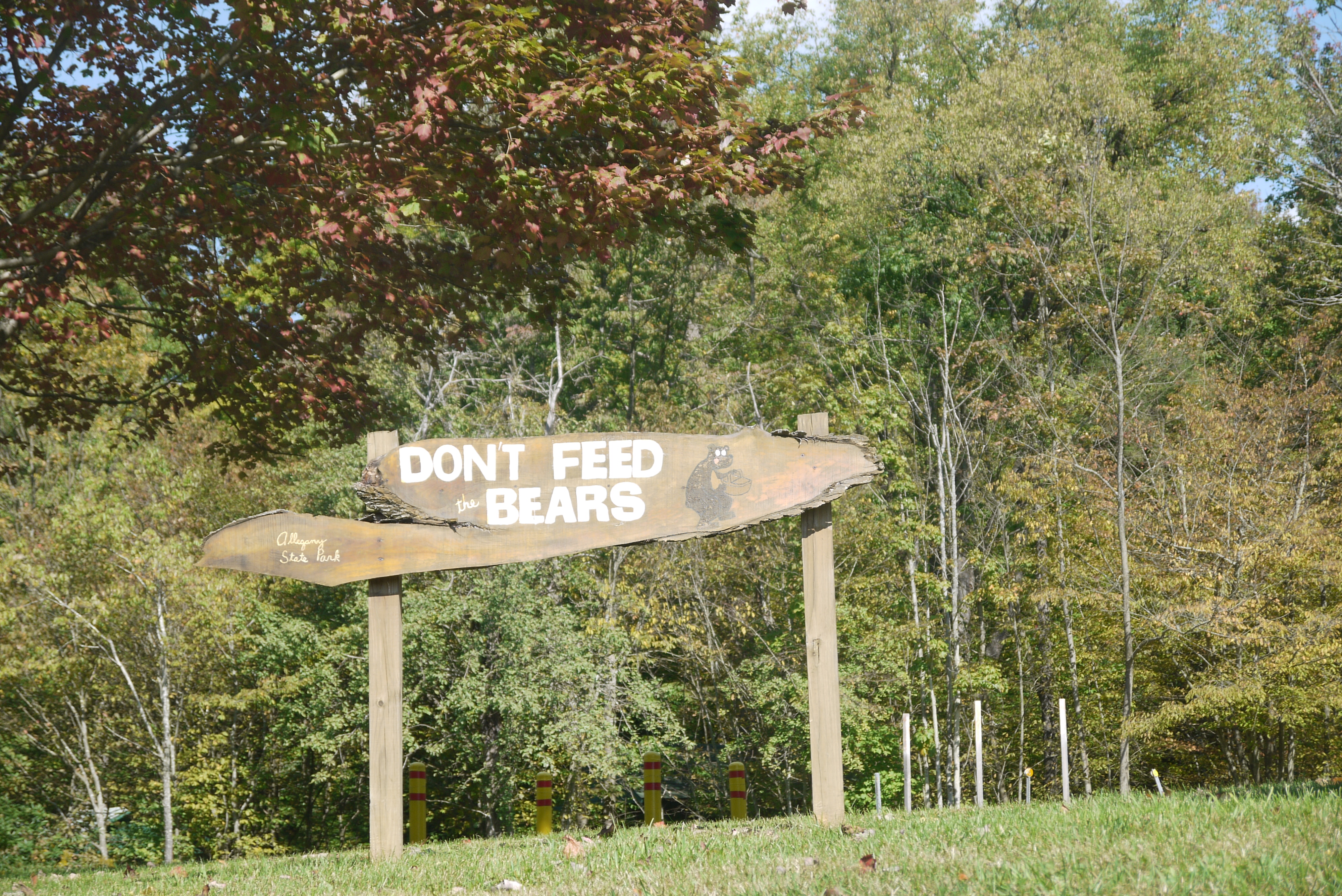 No sestdienas līdz pat pirmdienai pavadījām Aleganī dabas parkā Ņujorkas štata dienviddaļā. Aleganī parks aizņem 363 kvadrātkilometrus platības Apalaču kalnu pašā rietumu malā. Tas robežojas ar tāda paša nosaukuma valsts meža platībām Pensilvānijas štatā. Dabas parki – un Agita kaut kad dos izsmeļošāku skaidrojumu par tiem – pārsvarā ir izveidoti jau pirms 80 – 90 gadiem, un ne tikai, lai aizsargātu dabu, bet lai dotu vietu, kur dabas mīļotājiem dabu mīļot. Aleganī dabas parkā šim nolūkam ir izīrējamas ap 350 mājiņu (cabins), un vēl ir neskaitāmas piknika vietas, kempinga plači braucamo māju un telšu īpašniekiem, un desmitiem, ja ne simtiem jūdžu taku, gan pārsvarā ar kājām ejamu, ne riteņiem braucamu, kā mums ar Kārli nācās atklāt.